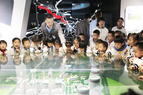 浙能(neng) 蘭電(dian)講解員為小學生科普電(dian)力(li)知識。申曄 攝